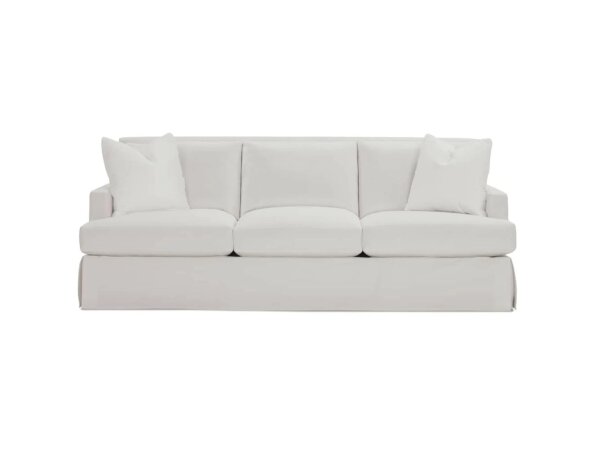 Stationary sofa with Spring Down seat cushions and a semi-attached back for plush, resilient comfort. Available in numerous leather and fabric selections with standard Mahogany finish and natural nailhead trim.