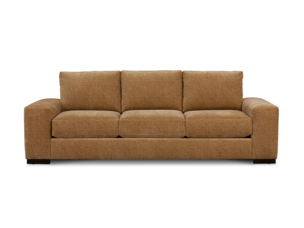 Wide track‑arm fabric sofa with loose, rotatable cushions for everyday comfort. Available in multiple sizes and 2/2 or 3/3 cushion configurations, with a 94 in. option on 2 in. block legs.