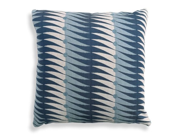 In collaboration with Block Shop textiles, shades of deep denim draws from the classic design of vintage backgammon boards, with