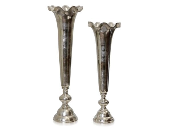 Silver Set Of 2 Cast Aluminum Vases