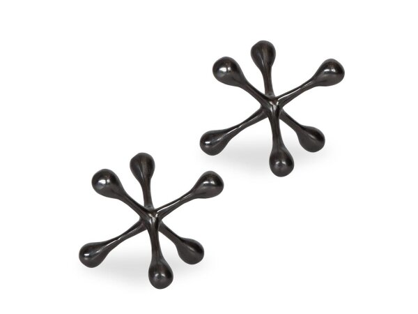 These cast aluminum trays feature unique, organic shapes finished in dark black nickel. Sizes: S-13x3x6, L-21x3x6