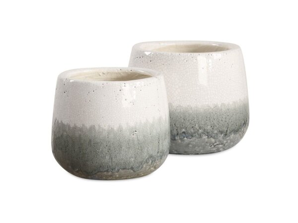 Elevate your home decor with this set of two crackled ceramic vases. Finished in an aged white and adorned with