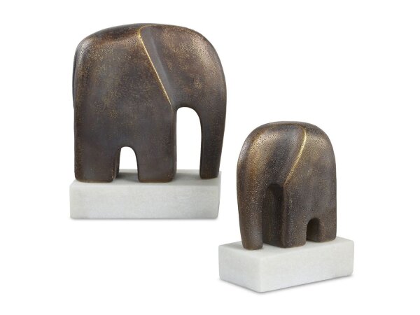 This stunning set of two antique bronze-finished elephants is beautifully crafted to bring a sense of elegance and charm to
