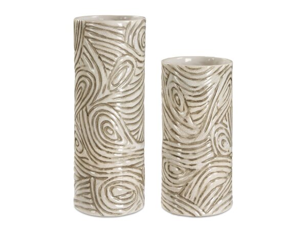 Add an organic touch to your space with these elegantly textured ceramic vases. Featuring an intricate, hand-carved swirl pattern in