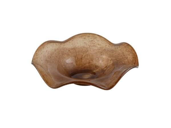 Elevate your decor with this stunning sculptured cast aluminum bowl, featuring an organic wavy edge and a rich, golden dark