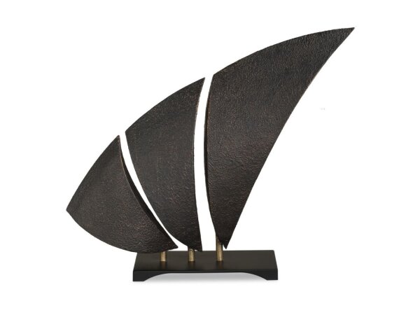 Make a bold statement with this modern abstract sculpture. Featuring a sleek, sail-inspired design with textured dark bronze metal and