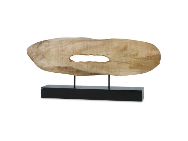 Natural mango wood log displayed on a matte black base. Each piece is handcrafted making it unique. Sizes will vary.