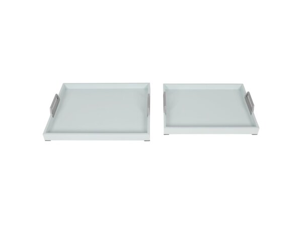 Norman Wyatt Home Spa Blue & Brushed Silver Set Of 2 Wooden Trays