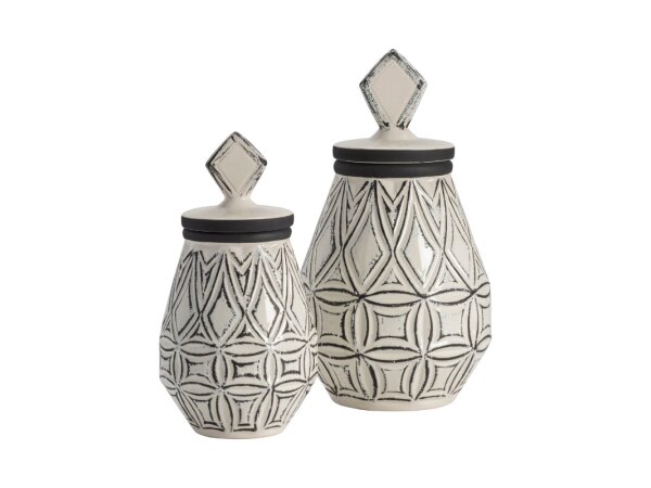 The Crestview Collection Geometrical Farmhouse Vases includes two vases of different sizes. Both vases are made of ceramic with a