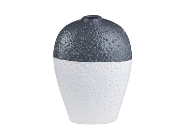 The Silas Vase exudes coastal charm with its hand-made ceramic craftsmanship and unique glazed dimpled finish. This small vase features