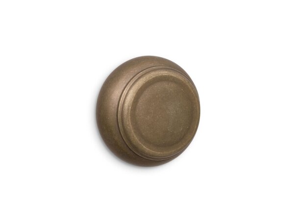 Solid brass round cabinet knob with a clean, contemporary profile; available in two sizes and three finishes. Pairs with square or round backplates for added emphasis.