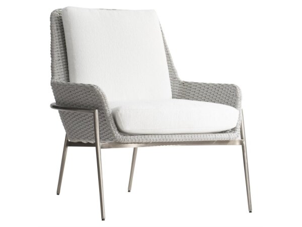 Woven rope in a Gray Mist finish lends this modern all-weather chair a relaxed yet sophisticated feel.