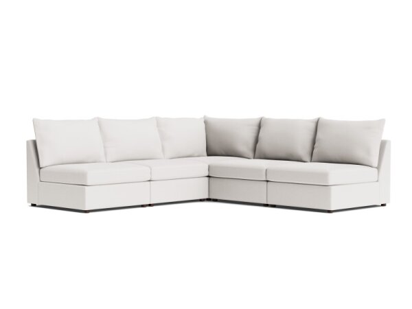 Outdoor modular L‑shaped sectional with deep seating and removable back cushions, offered in Sunbrella fabrics for a comfortable, patio‑ready lounge.