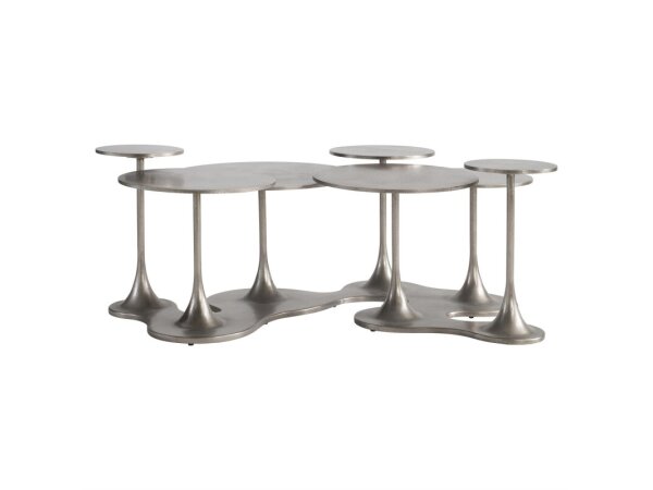 Outdoor rectangular cocktail table in durable aluminum with a hand-applied, wood-inspired finish sealed with a marine-grade clear coat. 48 in. W x 31 in. D x 16 in. H.
