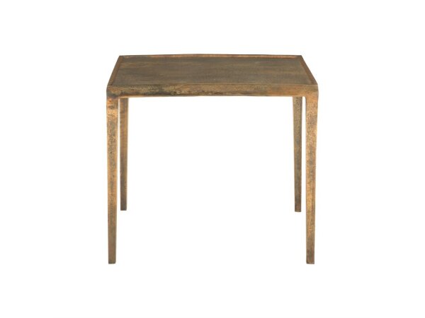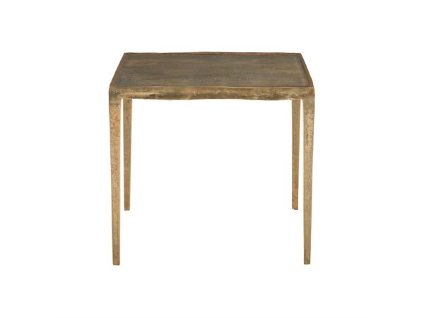 With a minimalist form and a luxurious vintage brass finish, this square accent table brings subtle elegance to an interior.