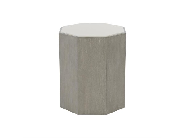 Finished in gray truffle, this octagonal accent table sets a serene and sophisticated tone.