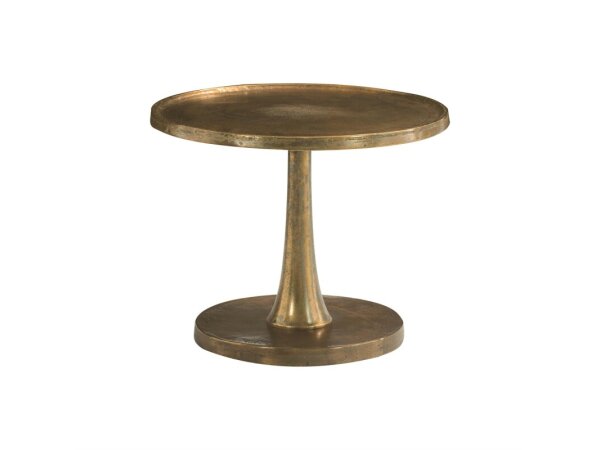 With a minimalist form and a luxurious vintage brass finish, this accent table brings subtle elegance to an interior.