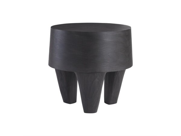 Sculptural and minimalist, this side table crafted from carbonized wood offers the rich texture of a rustic finish.