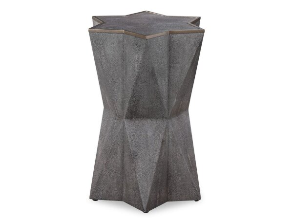 Unique star shaped accent table features a charcoal gray faux shagreen wrap, accented with a hand applied gold leaf trim.