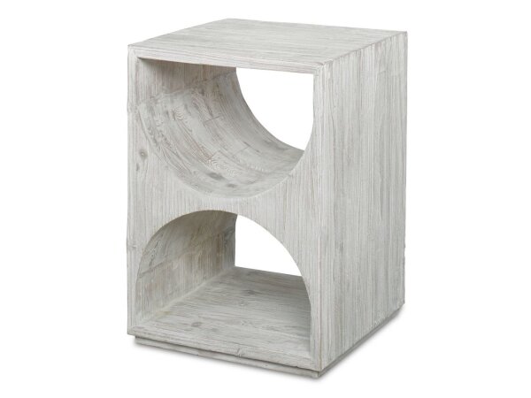 Influenced by Scandinavian style, this side table is constructed from solid fir wood with simple carved cut outs and is