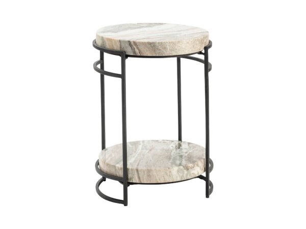 The Crestview Collection Harvey Marble Side Table thick marble rounds rest gently on the black ironwork. The beauty of the