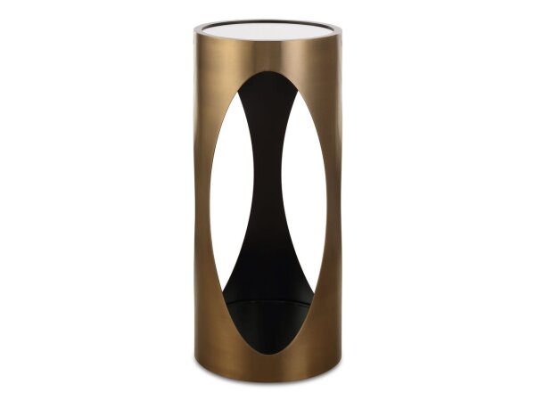 Achille’s mirrored top rests on a sleek brushed brass cylindrical base creating a perfecting resting place for your favorite drink