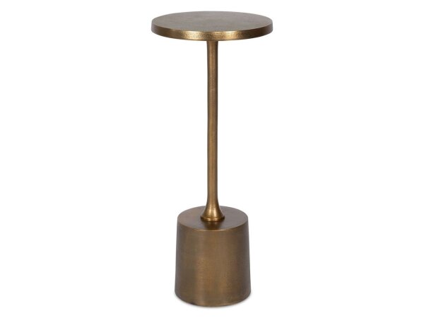 Minimalist in style with a chunky base, this solid aluminum drink table features a textured finish in antique gold. Suitable