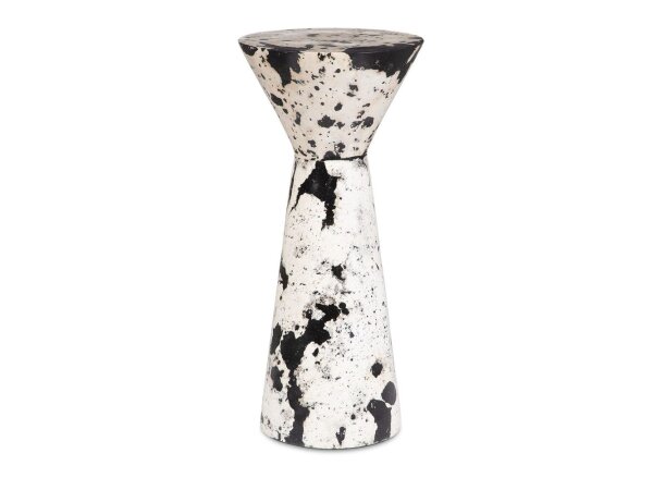 This drink table features a striking hourglass silhouette, crafted from limestone filled with black resin creating a beautiful veining effect.