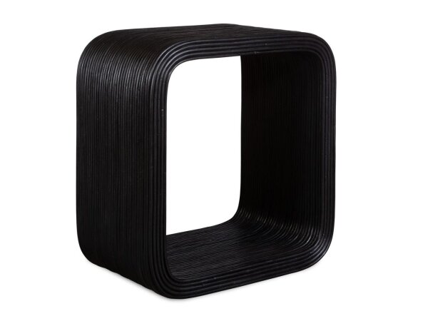 This side table seamlessly blends modern design with natural elements. This cube-shaped table features sleek natural rattan in a black