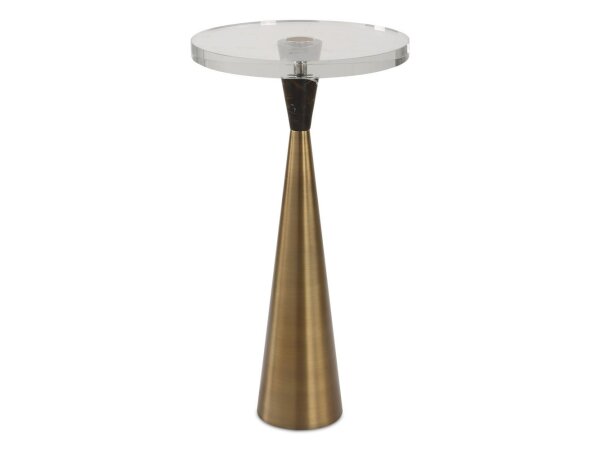 Sleek and contemporary, this accent table showcases a crystal top paired with a tapered metal base in brushed brass, beautifully