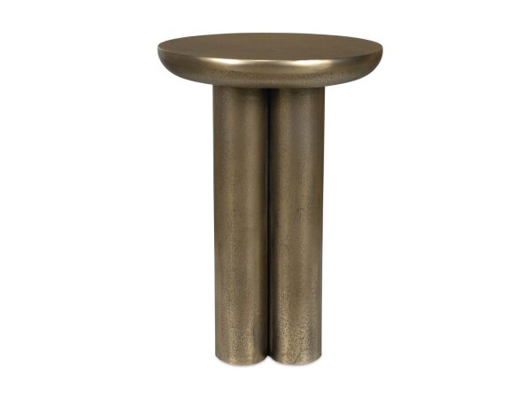 The Reade accent table features an antique brass finish on cast aluminum. Its sleek sandy texture and modern design will