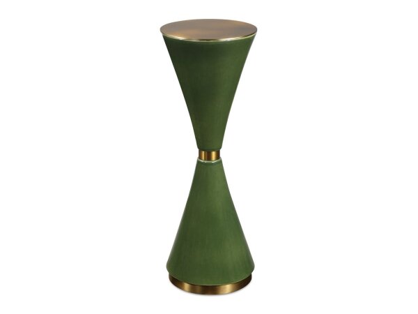 Compact drink table made of sandblasted mango wood with an ebony-like stain, featuring an orbed base and disc-like top. 24.8 in. H x 15.4 in. W x 15.4 in. D.