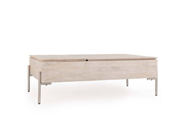 The Rocklin Coffee Table combines the natural beauty of mango wood with sleek iron legs, creating a modern and functional