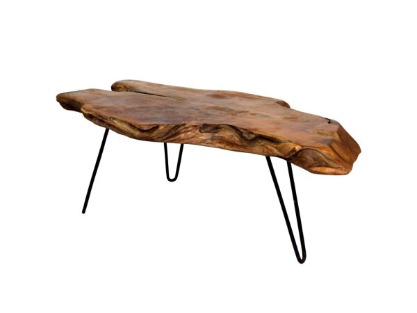 Baron Coffee Table Rustic Solid Teak Wood Table Top With Iron Paper Clip Legs