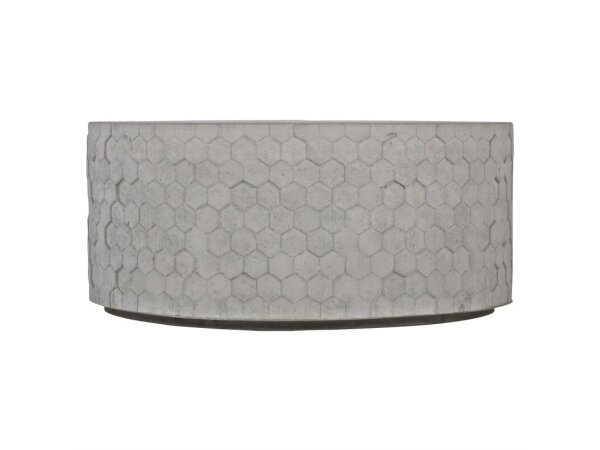 A textured honeycomb pattern adds depth and character to this distinctive cast concrete cocktail table.