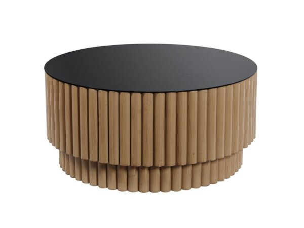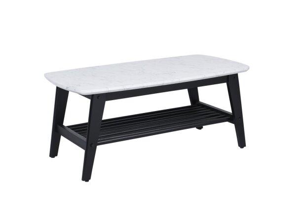 This Modern Farmhouse oversized square cocktail table is crafted from poplar solids with knotty white oak veneers, featuring a dusty charcoal finish and heavy distressing. It offers a high-low planked top, a bottom shelf for storage, and casters for easy
