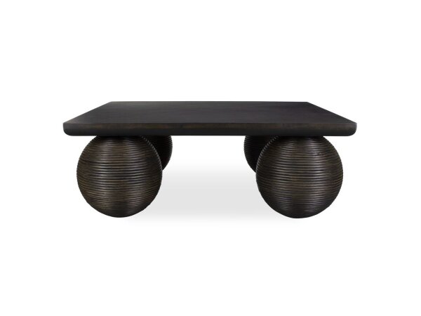 This coffee table is sure to be the focal point of any room, featuring oversized rattan-covered spheres as legs. The
