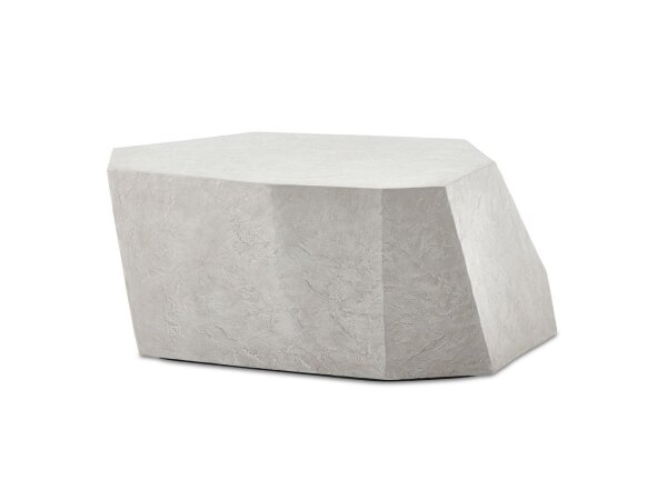 Constructed from glass reinforced concrete, this sculptural side table features an asymmetrical faceted design in a natural limestone finish. The
