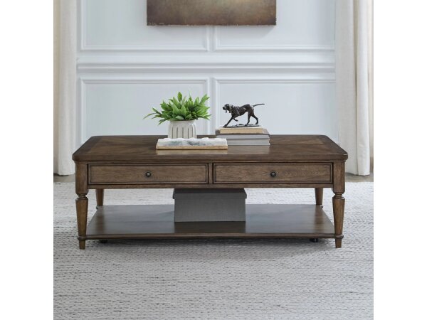 Textural and modern, this cocktail table boasts an eye-catching sliced teak top.