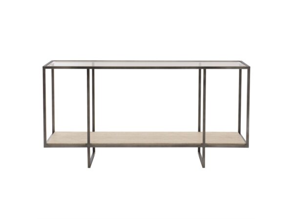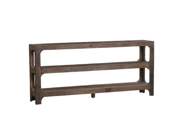 Introducing the Washburne Console Table by Crestview Collection, a captivating blend of functionality and rustic-inspired elements. This tiered design features