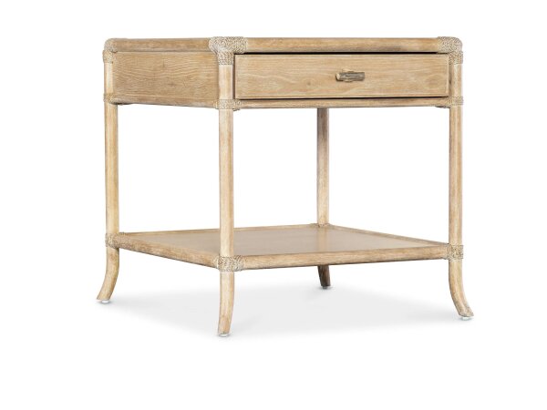22" (55.9 cm) Living Room Retreat Raffia End Table, crafted with attention to detail and elevated through Maple Veneers, Engineered Raffia, Rope and Tempered Glass.