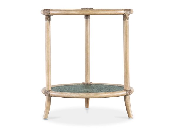 26 1/4" (66.7 cm) Living Room Retreat Pole Rattan End Table enriched by Oak and Maple Veneers with Rope and Resin, making it a distinctive interior accent.