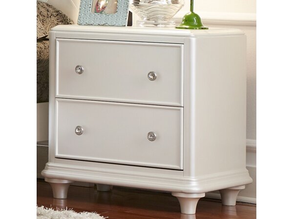 The Stardust 6 Drawer Dresser combines poplar, rubberwood, cashew solids, and MDF with an iridescent white finish. It features full extension drawer glides, felt-lined top drawers, and crystal knob hardware, offering ample storage with elegant details.