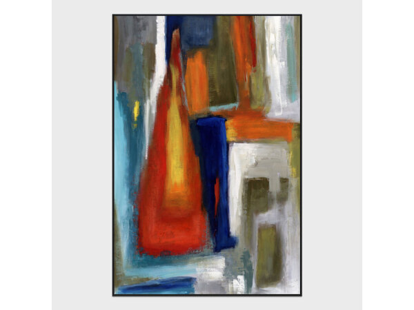 Bold geometric forms and dynamic contrasts define Tetris Painting, where abstraction meets structure in a balanced composition. Encased in a