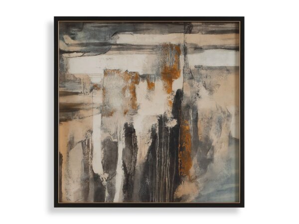 A captivating study in warmth and texture, this hand-painted canvas features rich tones of deep bronze and golden ochre. It