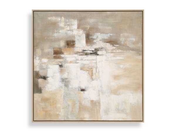 This compelling hand-painted artwork features a rich interplay of earthy tones including muted browns, and contrasting whites, accented with touches