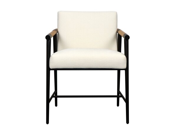 This Parkland Falls console stool features solid pine legs with glides and a cushioned upholstered seat in an Oatmeal linen-blend fabric (30% linen, 20% silk, 50% cotton). It offers saddle-shaped seating and supports up to 250 lbs.