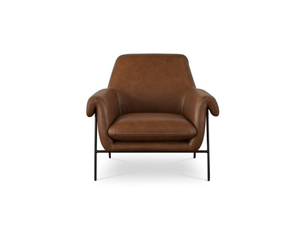 Leather accent chair with an open silhouette and a contoured solid birch frame for a light, retro look. Semi-aniline top grain leather provides tempered comfort with Scandinavian-inspired style.