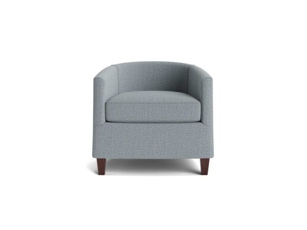 Tufted wingback accent chair with a tall 47 in back and sleek silhouette, customizable in fabric and cushion comfort. Set on 8.5 in tapered legs; 31 W x 35 D x 47 H in.