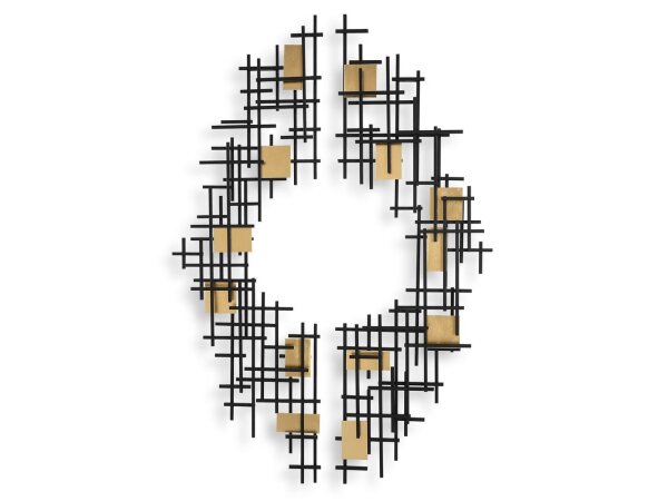 Handcrafted by skilled artisans, this wall decor features a striking black and gold leaf medallion. Artwork is set against a